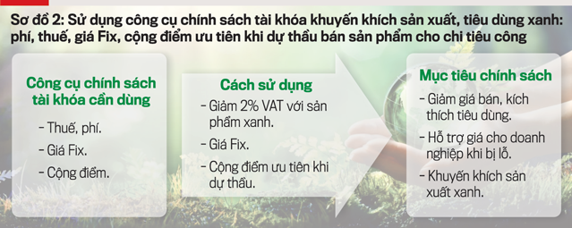 Trong các mảng chính sách cần xanh hóa theo ngành nghề phát triển nêu trên, hai chính sách quan trọng nhất là chính sách tiền tiền tệ và chính sách tài khóa cần có lộ trình, bước đi cụ thể bằng việc tạo lập ra cơ chế, sử dụng công cụ của chính sách tiền tệ và tài khóa để khuyến khích, thúc đẩy việc sử dụng nguồn lực của nền kinh tế cho tăng trưởng xanh.