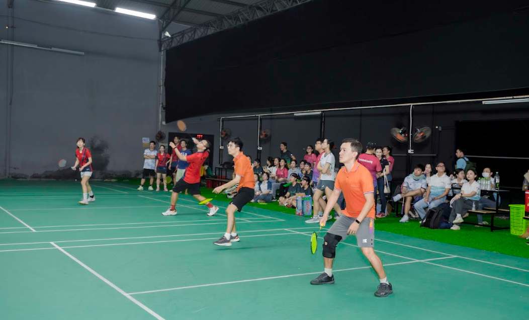 Trận thi đấu cầu lông diễn ra kịch tính trong sự cổ vũ của các cổ động viên