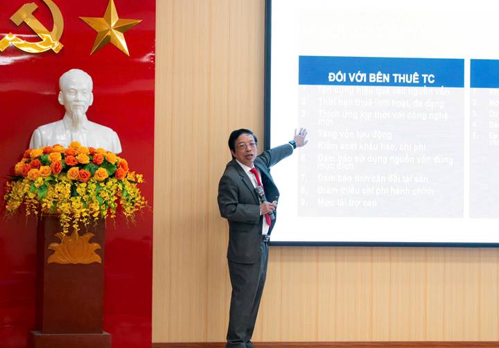 Trong phần trình bày, ông Hòe nhấn mạnh vai trò của hoạt động cho thuê tài chính như một công cụ hữu hiệu giúp doanh nghiệp đổi mới công nghệ, đầu tư dây chuyền sản xuất xanh, nâng cao năng lực cạnh tranh và đáp ứng yêu cầu phát triển bền vững.