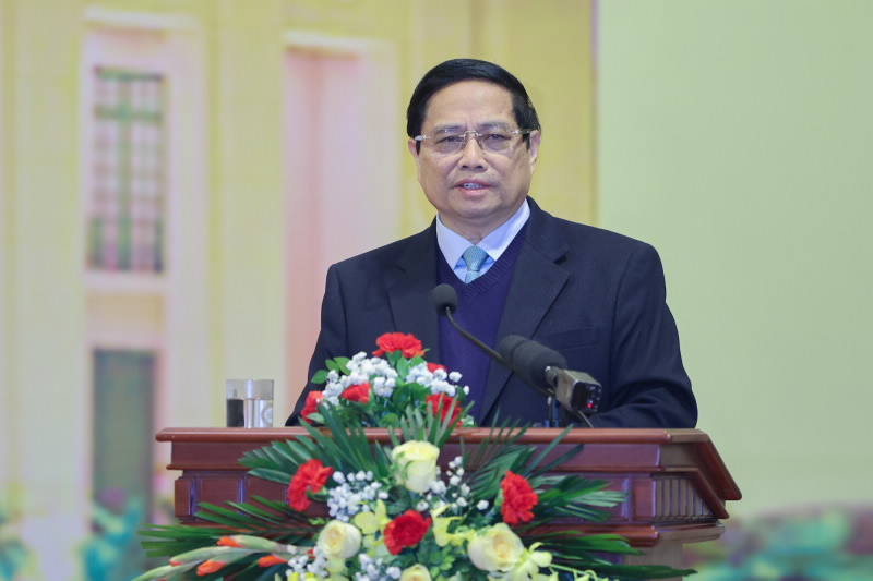 Thay mặt Chính phủ, Thủ tướng biểu dương, đánh giá cao kết quả công tác của ngành ngân hàng, dưới sự lãnh đạo của Trung ương Đảng, thường xuyên trực tiếp là Bộ Chính trị, Ban Bí thư, đứng đầu là Tổng Bí thư, cùng Chính phủ, sự đồng hành của Quốc hội, sự vào cuộc của cả hệ thống chính trị, sự ủng hộ của nhân dân, doanh nghiệp, bạn bè quốc tế để cả nước đạt được thành tựu quan trọng trong năm 2024.