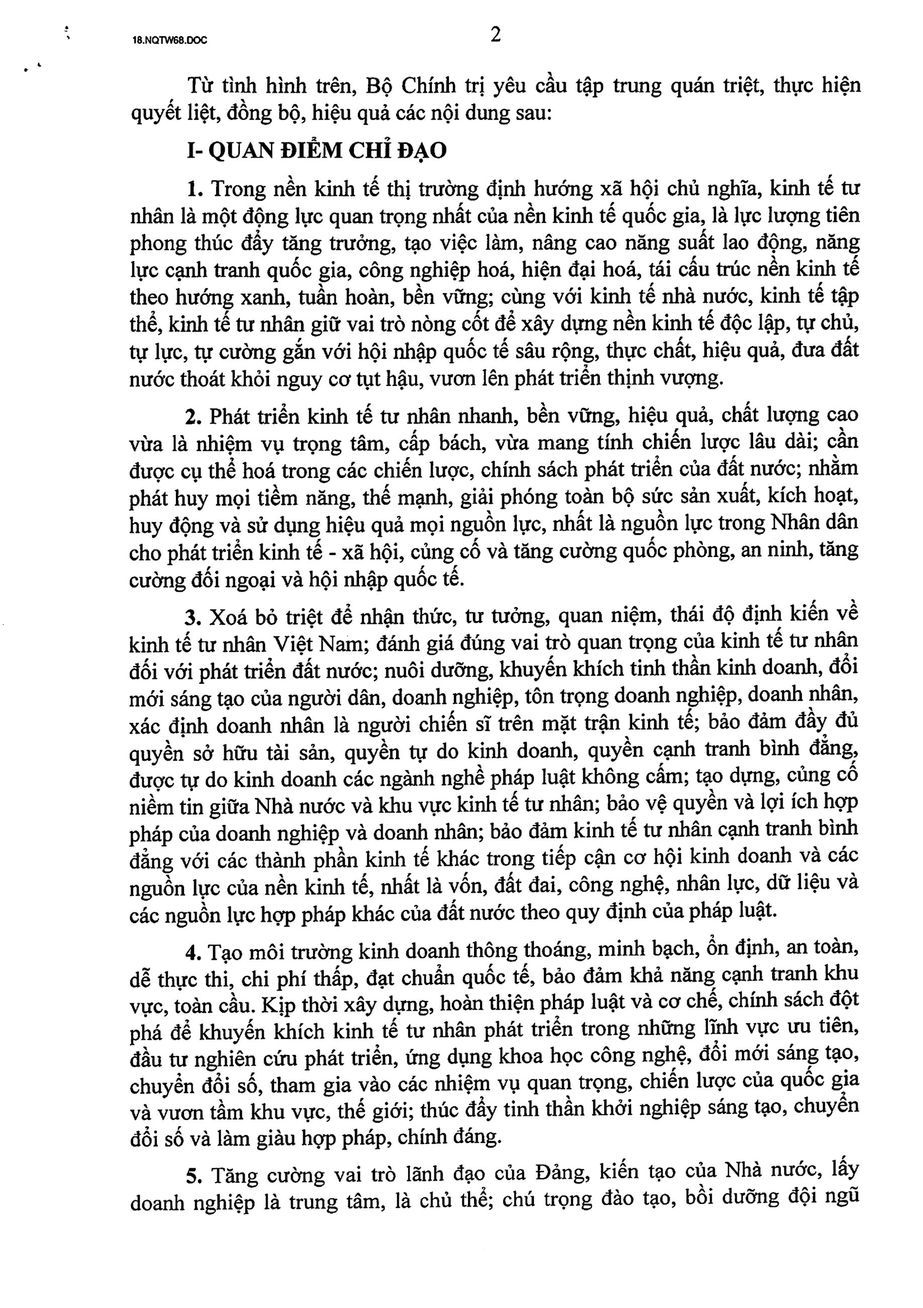 Nghị quyết số 68-NQ/TW của Bộ Chính trị về phát triển kinh tế tư nhân